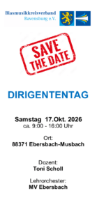 Dirigententag am Sa. 17.10.2026 ab 8:30 Uhr